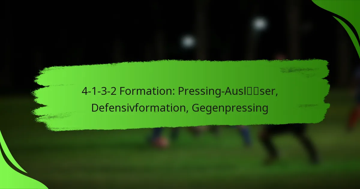 Pressing-Auslöser in der 4-1-3-2-Formation sind spezifische Aktionen oder Situationen, die die Spieler dazu bringen, ein koordiniertes Pressing gegen die gegnerische Mannschaft einzuleiten. Diese Auslöser sind entscheidend, um den Ball zurückzugewinnen und das Spiel des Gegners zu stören, was erfordert, dass die Spieler sich ihrer Umgebung und der Dynamik des Spiels bewusst sind.